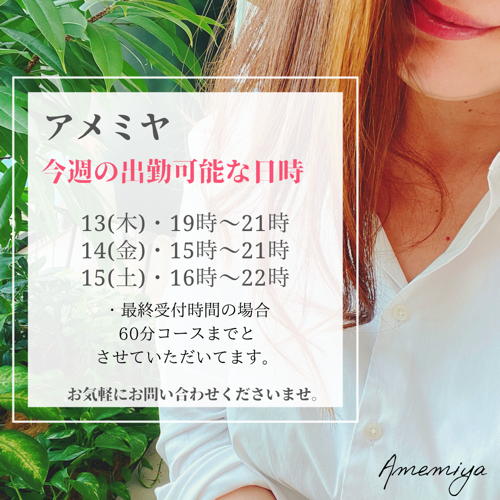 東京委員会ZTOP写メ日記トップアメミヤ 戻る アメミヤさんの記事一覧 - 写メ日記 セラピストを検索 アマノさん アメミヤさん アヤセさん イイヅカさん イマイチさん ウエハラさん オオマツさん カガワさん カトウさん カノウさん カミジョウさん カンダさん サイトウさん サクライさん サワムラさん シラトリさん スオウさん スギウラさん セツナさん セトさん センドウさん タオさん タケノウチさん タチバナさん タヤマさん チバさん ツバキさん トオノさん ナカシマさん ナカムラさん ナガセさん ナナミさん ニイナさん ニシナさん ハスミさん ハヅキさん ハナダさん ハヤマさん ハラダさん ハルナさん ヒガさん ヒグチさん ヒメキさん ヒラコさん ヒロセさん フカツさん フジナミさん フジワラさん ボタンさん マツバラさん ミウラさん ミカミさん ミズキさん ミズハラさん ミタライさん ミヤタさん ヤナギさん ヤマカワさん ユズキさん ヨシザワさん ヨシノさん 仙台スギモトさん 埼玉アサヒナさん 埼玉フタバさん 大阪タマキさん 札幌ミコトさん 立川アオイさん 立川カトウさん アメミヤ 0件 4 2021年05月19日 写メ日記一覧を見る プロフィールを見る レアな出勤スケジュール 21(金)12時から17時で 出勤登録しました!! 金曜日昼間は めちゃくちゃレアです。 多分、次にあるとしても 8月なのです。 ご都合合う方は ぜひこの機会にどうぞ!! アメミヤ 続きを見る アメミヤ 0件 3 2021年05月17日 写メ日記一覧を見る プロフィールを見る 21(金)お昼出勤 アメミヤです 今週21(金) 、珍しく お昼12時から出勤できるのですが、 タイミング合う方いましたら 嬉しいな 平日の昼間出勤は 仕事の都合上難しいのですが、 この日だけ できるんです この日は夕方17時くらいまでの 出勤予定で スケジュールを空けてます。 あと木曜夜と 土曜夜で 今週は 出勤スケジュール調整しております アメミヤ 続きを見る アメミヤ 0件 4 2021年05月14日 写メ日記一覧を見る プロフィールを見る 明日も特別に 本日もお疲れ様でした 今日は17時にご予約いただき、 私も 今日は終了しちゃいました笑 なので、 明日15(土)も出勤しますね!! 17時スタートでご予約いただくことが わりと多く、 早々に受付終了してる ここ最近です。 来週はまた木曜日、土曜日あたりでの 出勤予定してますよ (出勤は週末率高めです) アメミヤ 続きを見る アメミヤ 0件 3 2021年05月13日 写メ日記一覧を見る プロフィールを見る いつもいつも 出勤情報ばかりの 写メ日記となってますが... お許しを アメミヤです 明日14日金曜日 【17時ー21時】で出勤します タイミング合います方は どうぞ 続きを見る アメミヤ 0件 5 2021年05月10日 写メ日記一覧を見る プロフィールを見る リクエスト受付てます。 こんばんは お会いしたことある方には、 普段どんな仕事してるか 話してることが多いのですが... 今とても順調な分、 委員会に出勤できる日時が かなり限られてきてしまってる ここ最近のアメミヤです。 今週、 13(木)19時〜21時 14(金)15時〜21時 15(土)16時〜22時 の中でしたら リクエストも受付できます しばらくは 木、金、土 なら可能という日々が続きそうです。 アメミヤ 続きを見る アメミヤ 0件 3 2021年05月07日 写メ日記一覧を見る プロフィールを見る おひとりさま限定 こんにちは 今日は18時-21時半で 出勤します アメミヤ 続きを見る アメミヤ 0件 4 2021年05月02日 写メ日記一覧を見る プロフィールを見る 出勤情報 こんばんは。 GWいかが お過ごしですか?? 明日出勤します アメミヤ 続きを見る アメミヤ 0件 4 2021年04月30日 写メ日記一覧を見る プロフィールを見る ふわふわに包まれる 肌触り 自分のお肌はもちろん、 タオル類もふわふわに こだわります(anim_heart01) 本日17時〜21時で 出勤します。 おひとりさま限定 21時スタートの場合60分コースまでとさせていただきます。 アメミヤ 続きを見る アメミヤ 0件 2 2021年04月30日 写メ日記一覧を見る プロフィールを見る ふわふわに包まれる 肌触り 自分のお肌はもちろん、 タオル類もふわふわに こだわります(anim_heart01) 本日17時〜21時で 出勤します。 おひとりさま限定 21時スタートの場合60分コースまでとさせていただきます。 アメミヤ 続きを見る アメミヤ 0件 5 2021年04月29日 写メ日記一覧を見る プロフィールを見る よくあるリクエスト よく、 マスク取ったお顔が見たいと 言われるので... マスク取った部分だけ、 唇ショットの アメミヤです 笑 本日、18時-21時 明日(金) 17時-21時 出勤します 5/1(土)2(日)は おやすみします アメミヤ 続きを見る 678910111213141516 全写メ日記一覧 戻る 手が温かくて気持ちがいいって喜ばれます♡ セラピスト紹介 アメミヤ (42) T163 B100(I) W68 H98 ランク 本日出勤 本日出勤18:30~19:30 おすすめ写真 678910111213141516 全写メ日記一覧 戻る