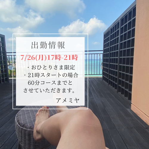 アメミヤです。 明日26日(月) 17時-21時で出勤します!! 余談ですが... この1年ほど、 テレビ無し生活をしている為、 オリンピックを 感じれない 私です 涙 |